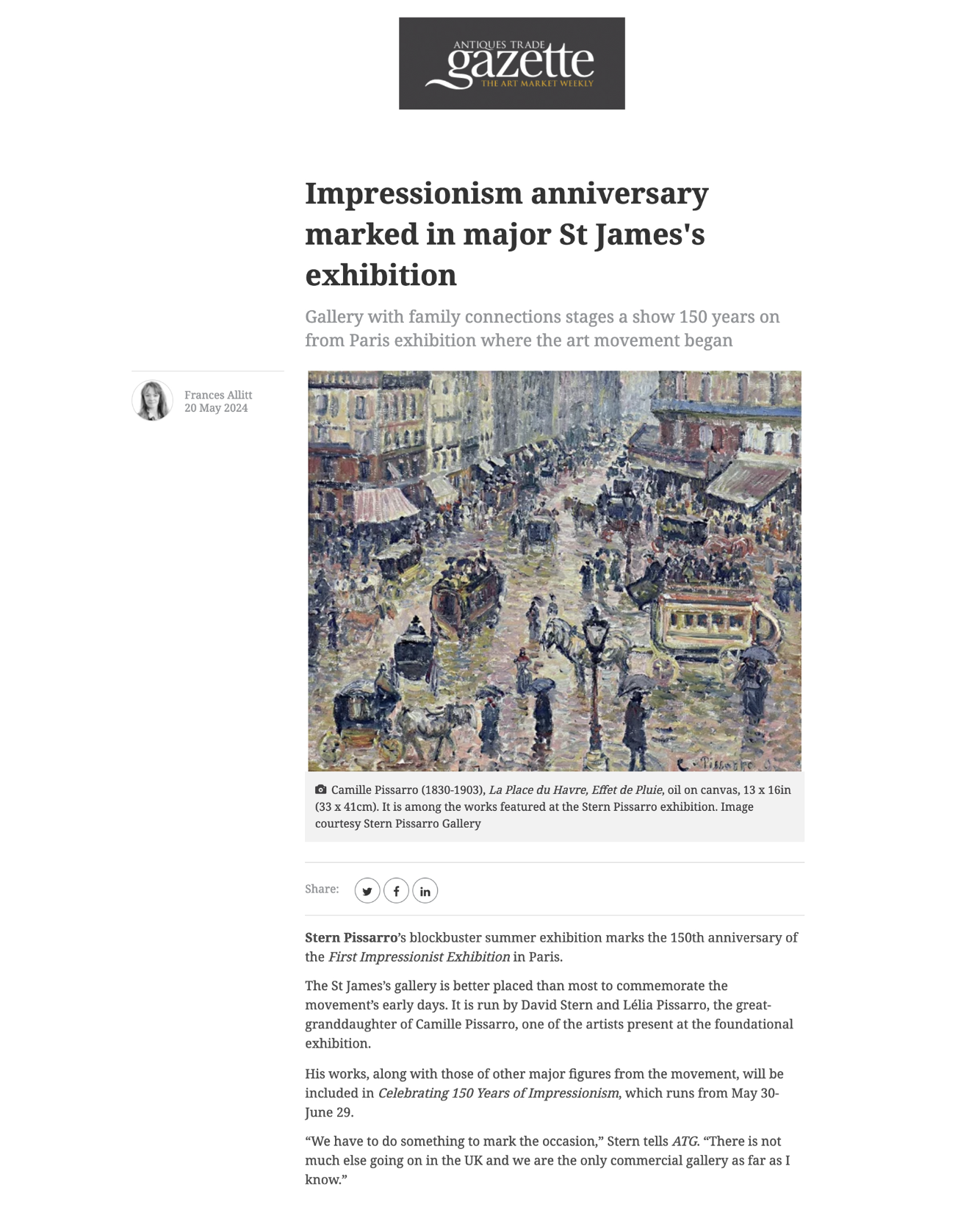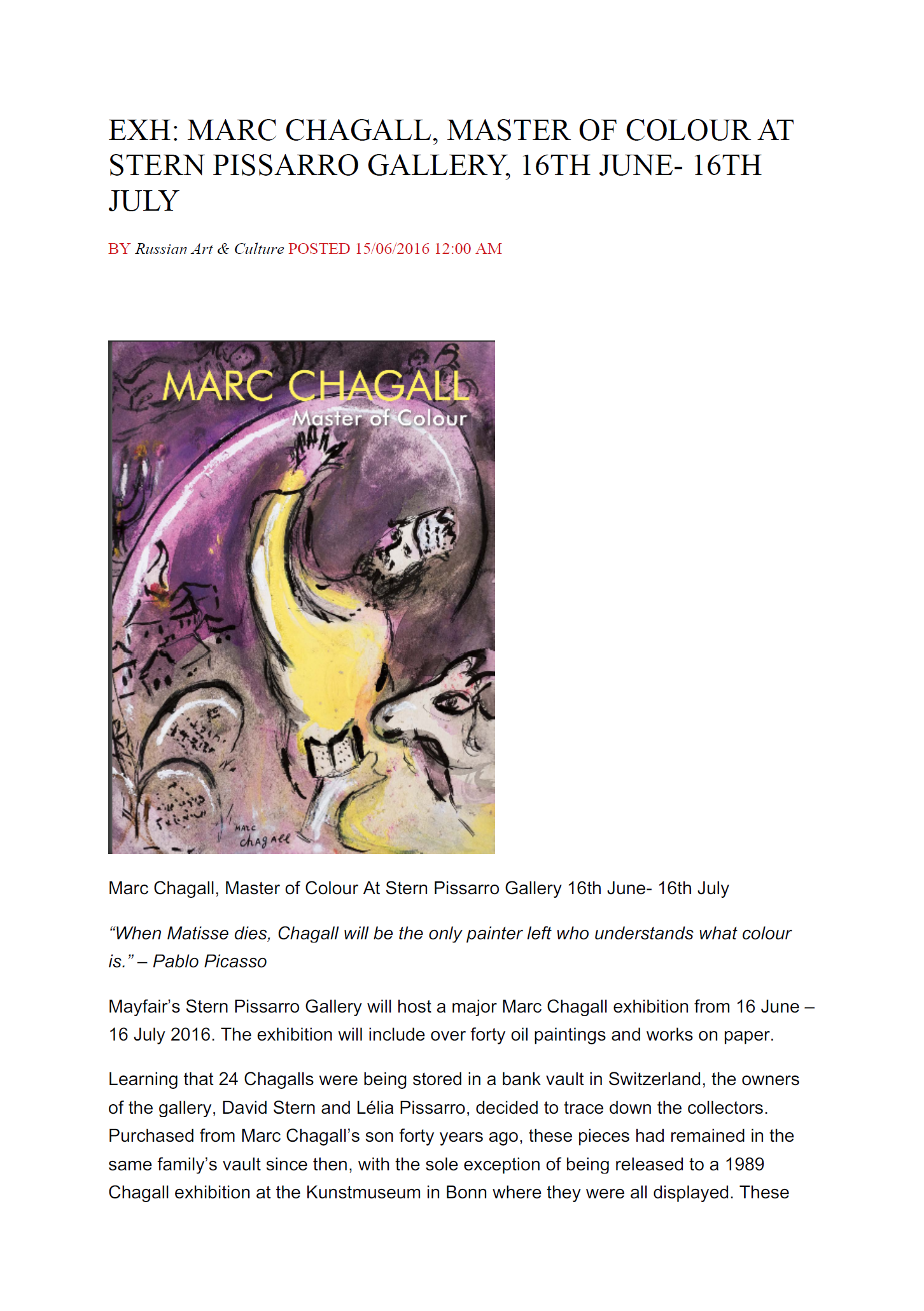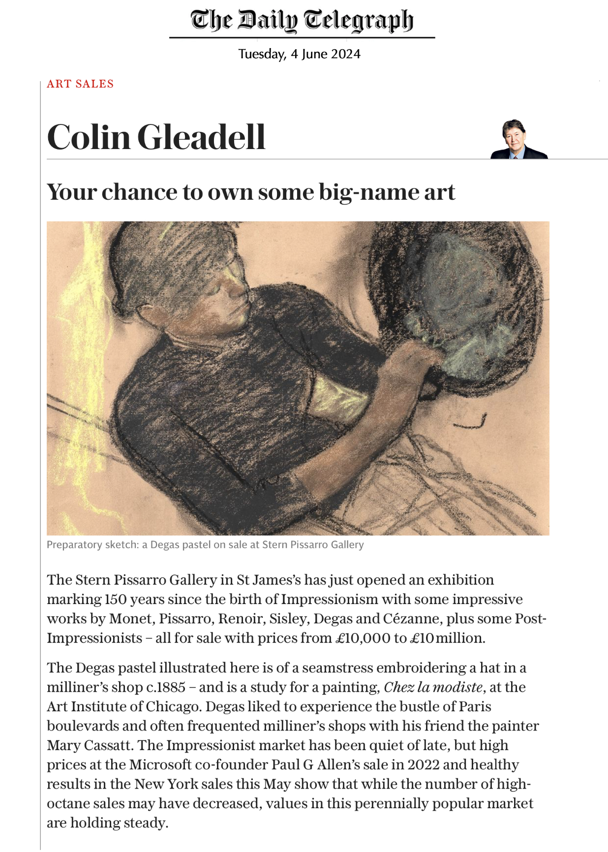 Marketing Where you are one of our clients or have otherwise agreed to be contacted for marketing we may use your personal information to send you information about Stern Pissarro Gallery events, art fairs and works of art. You can unsubscribe from receiving them at any time, details of how to unsubscribe will be included on each electronic mailing we send you.